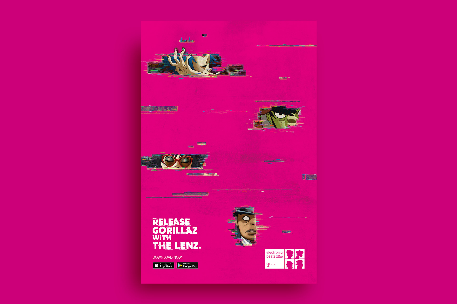 The iconic Deutsche Telekom colour magenta is recognisable everywhere, and it was made irresistible by giving it another dimension. Using simple chroma key technology, 'The Lenz' app became the hub for the campaign by turning everything magenta into a viewable screen for music, lifestyle and promotional content. To help launch this new dimension, a partnership was formed with Gorillaz to transform any magenta surface into a visual portal by allowing fans to view exclusive content and to experience a level of depth into the world of Gorillaz.